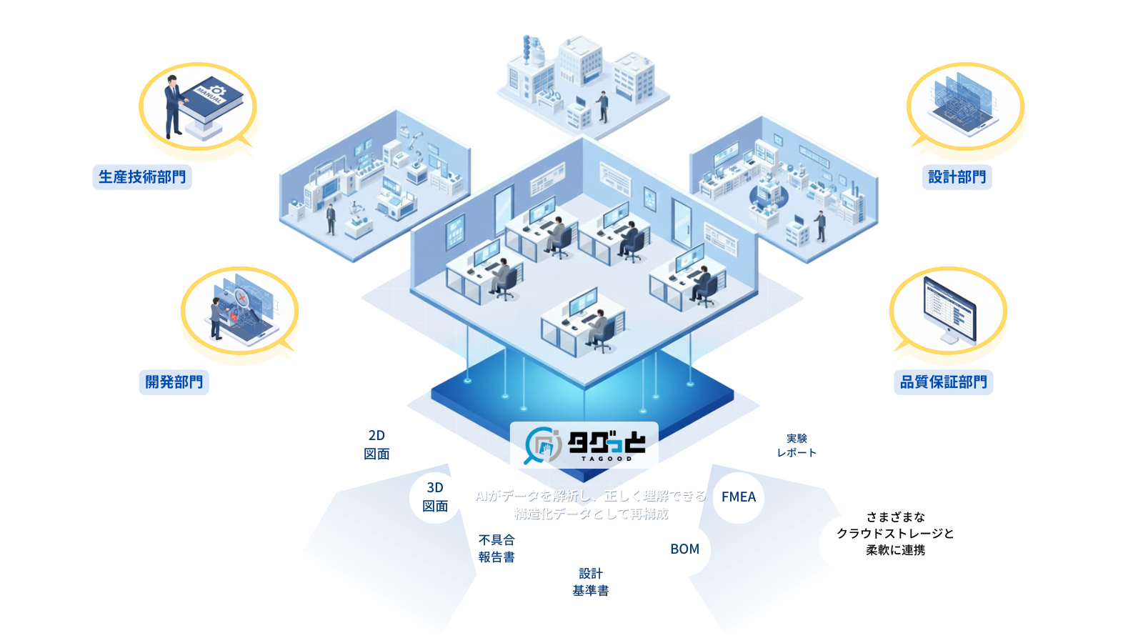 データの整理やAIエージェントによるリコメンド機能を搭載し、業務の効率化や新製品の品質向上を実現する「設計AIエージェント」です。